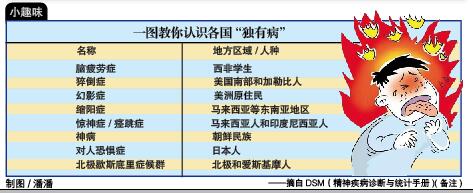 “从病症上看,‘火病’就更像中国人说得多的焦虑症、狂躁症等。”黄建乐表示,文化结合症候群是每个国家都有的,中国也不例外,“我们也有一些国外不曾听说的‘病’,比如‘肾虚’和‘走火入魔’等。”