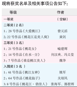 评审委员会严格参照美人窝文化公园中心主题雕塑设计方案征集公告的设计说明,以环境协调性、功能性、创新性等设计原则为计分标准,秉着审慎、认真、负责的态度,经三轮评选后一致认为,现有参选作品各有其优点及特色,但同时也存在不足,有改进空间。暂无一幅作品能作为公园主题雕塑设计原型,完美诠释桃江美人文化。经评审委员会充分讨论商议并投票表决,决定“一等奖空置”。