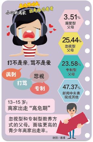 其实,不仅仅是长沙,上海市就曾对19个区县数万名初高中学生进行调查,20.1%的学生调查前过去的一年中想过离家出走,3.1%的学生在调查前过去的一年中离家出走过。从统计数据来看,学生离家出走的比例近几年呈上升趋势。