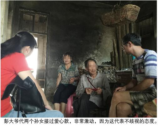74岁的彭大爷同样处境艰难。他患有脑梗塞,却还要抚养三个小孩。因为儿媳儿子先后入狱,且刑期较长,全家就靠他每月3000多元的退休金生活。在大孙女出嫁后,他又帮已去世的五保户弟弟照看其收养的10岁女孩。幸好老人有一个不离不弃的女朋友刘女士。“我们两个都是在失去老伴后通过别人介绍认识的。他媳妇入狱两年后,我才知道他家的情况,原本我很犹豫,担心家人反对,也在意别人的眼光,可我儿子说,我们不能给人家雪上加霜!我就坚持下来了。” 刘女士一边说一边流泪。