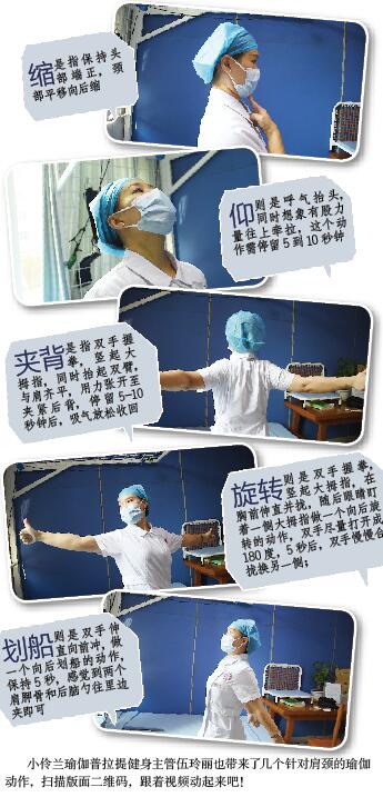 为此,卜丹和同事们还特地设计了一组针对颈椎部的康复锻炼运动操:一缩二仰三夹背四旋转五划船。