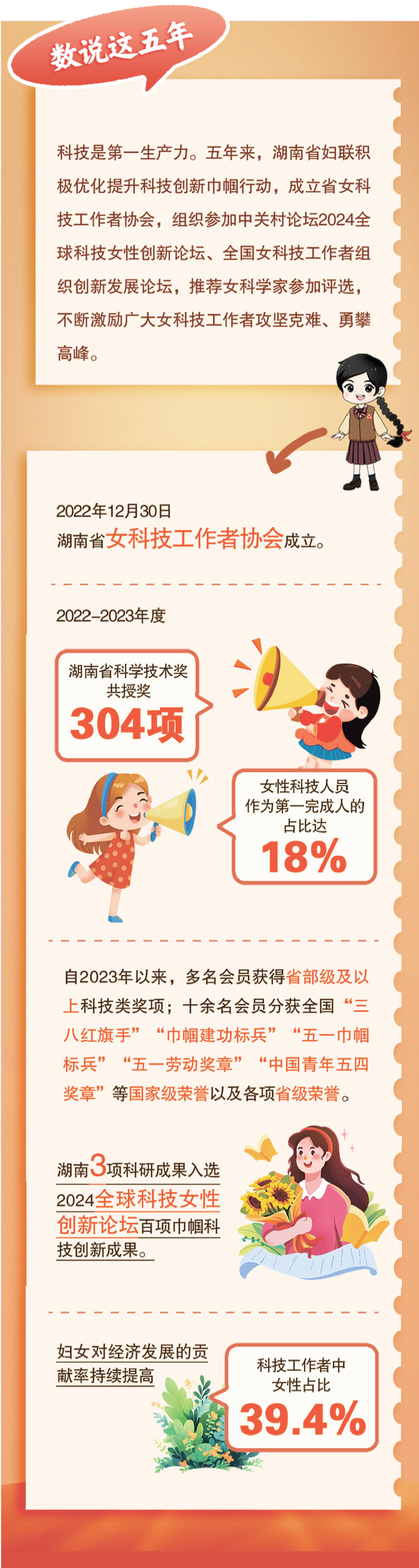 在科技创新的漫漫征途上,湖南女性的身影必不可少。她们在科技最前沿克难前行,在经济发展主战场竞逐拼杀,在国家重大需求中劈波斩浪,在守护人民生命健康中扛起使命,成为推动科技自立自强、发展新质生产力不可或缺的重要力量。