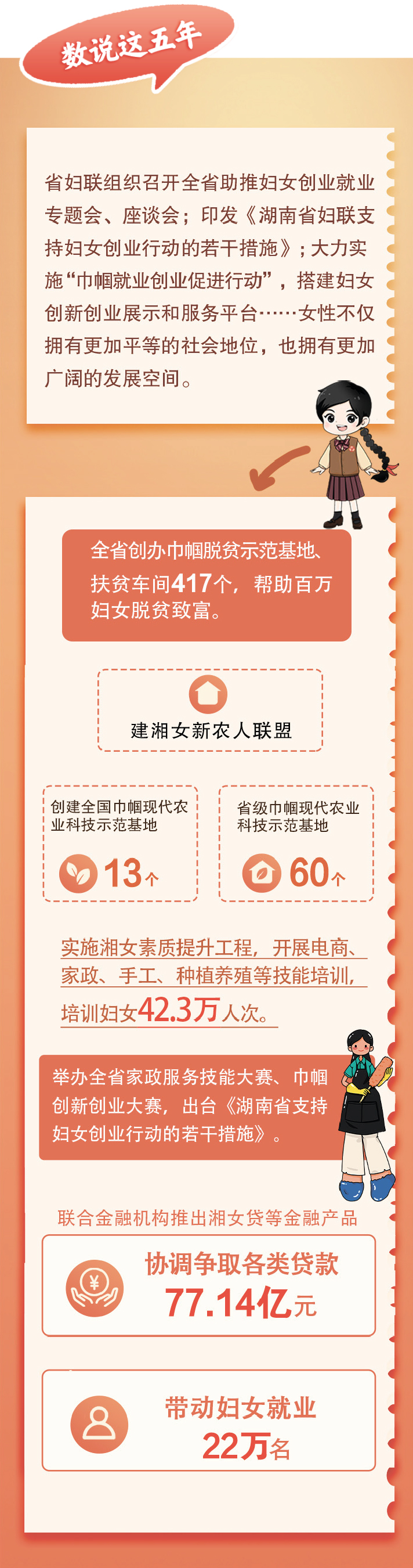 近年来,湖南省妇联通过政策扶持、活动引领、服务推动,为各领域妇女的“她”梦想赋能。越来越多的三湘女性通过就业创业参与经济活动,在科技、文教、互联网、乡村振兴等领域发挥了重要作用,也带领一大批姐妹一起奔致富路。