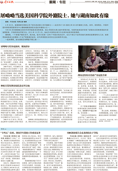 ·屠呦呦当选美国科学院外籍院士,她与湖南有…