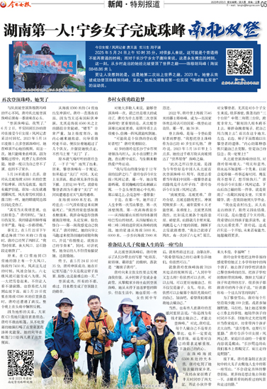 更让人没想到的是,这是她第二次站上世界之巅。2023年,她曾从南坡成功登顶珠穆朗玛峰。至此,她成为湖南省第一位实现“珠峰南北双登”的运动员。