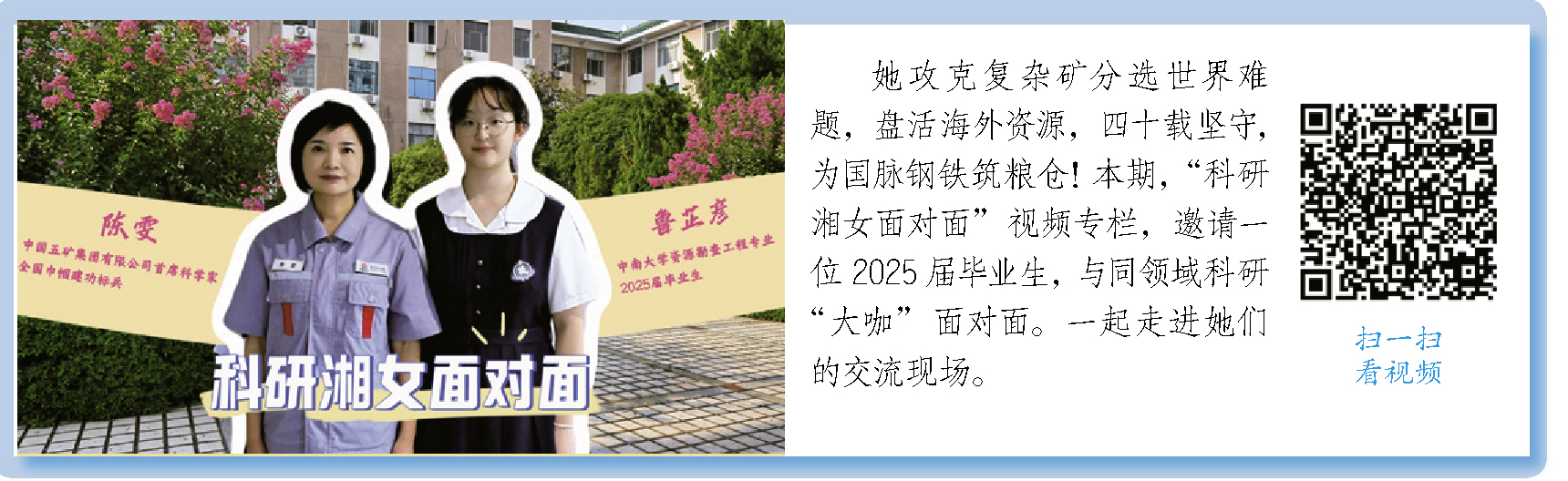 “我的导师余永富院士先后在1986年和1989年获得‘全国五一劳动奖章’、获评‘全国先进工作者’,我也先后被评为‘全国巾帼建功标兵’‘全国劳动模范’,这就是一种有效的师生传承。”陈雯告诉今日女报/凤网记者,如今,随着智能时代的来临,她又有了新的科研方向——从事黑色金属铁、锰、铬和铁基共伴生关键战略金属稀土、铌、萤石、钒、钛、钴、镍等为特色的关键金属综合利用两大研究方向,为矿产资源高效低成本清洁利用提供全方位技术服务。不仅如此,她还准备利用智能AI的手段来采矿,“让我们的矿山实现高端智能无人化的矿业开采,使采矿的安全性进一步提升”。