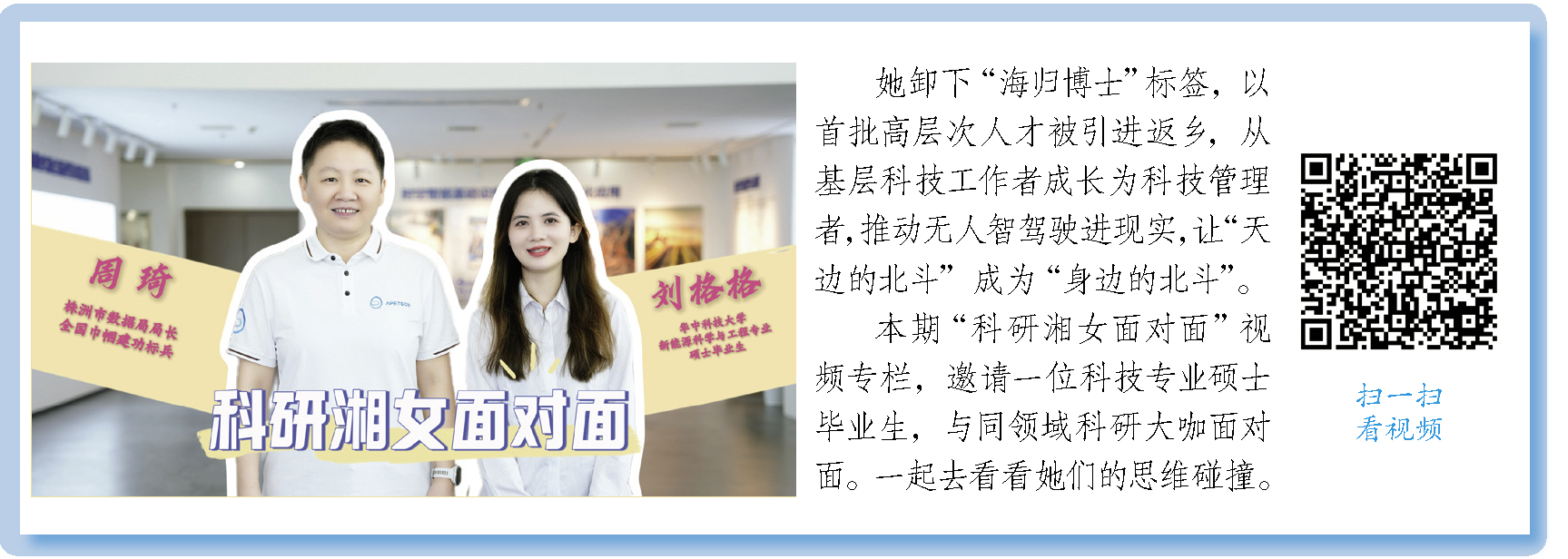 周琦是株洲市数据局局长。2004年,她从美国留学回国,5年后作为株洲高新区首批高层次人才被引进返乡。从专注技术研发的基层科技工作者,到统筹资源、推动创新的科技管理者,她的每一步转型都写满了“实干”与“突破”。