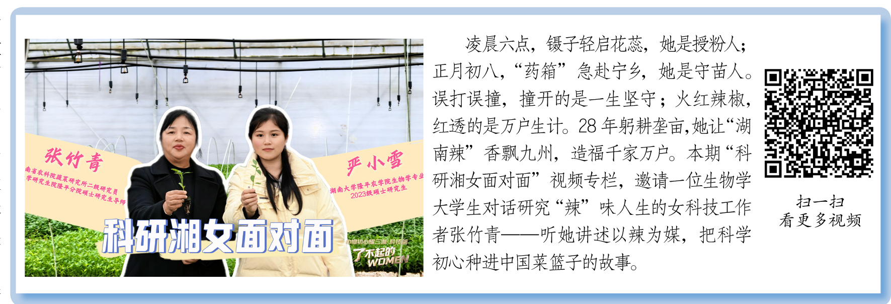 “我与辣椒育种,本是误打误撞的结缘。”张竹青常跟学生们这么介绍。然而,正是这份“误打误撞”,让她在田埂间扎根28年,育成百余品种,惠及千万农户。而当站上三尺讲台,面对莘莘学子,她总愿将这份“缘分”化为薪火,传递下去。