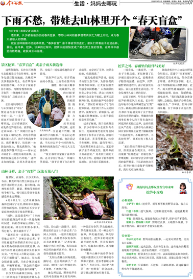 “家长带孩子野外挖笋初衷好,但要注意合规安全,不要出现被‘原路遣返’的尴尬事。”李晞提醒,同时要学会分辨可食用的春笋野菜,不认识的坚决不采;挖笋时要注意保护竹鞭根系,践行无痕山林理念。