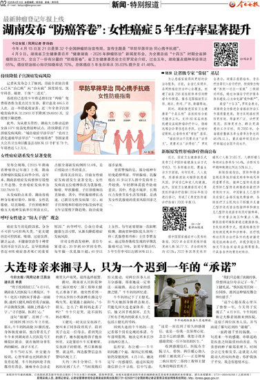 ·湖南发布“防癌答卷”:女性癌症5年生存率显…